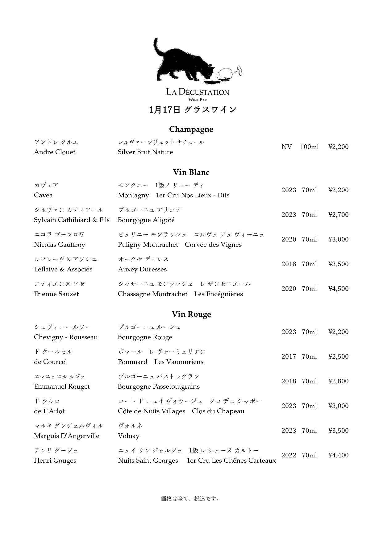 Le Menuメニュー