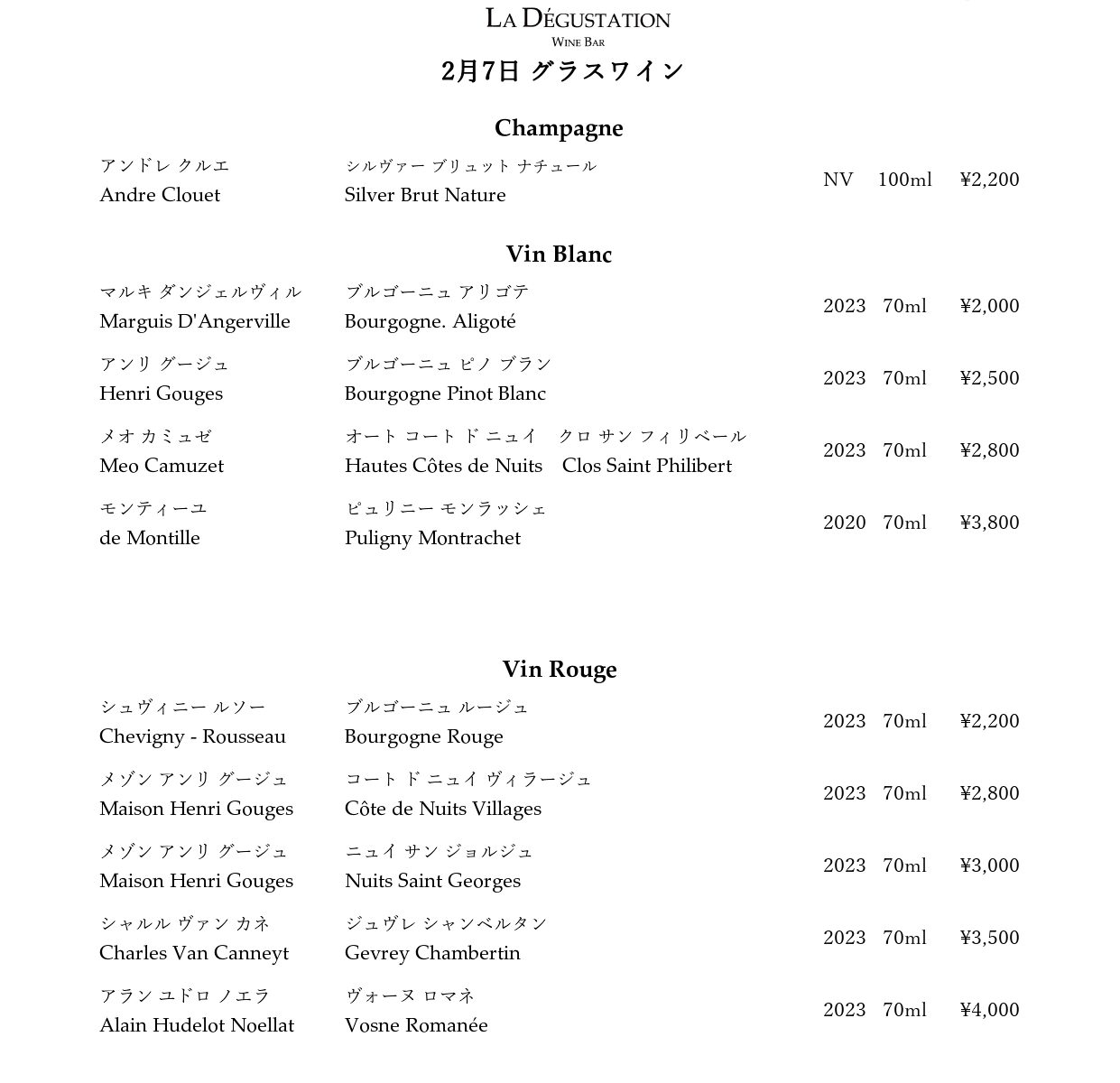 本日のワイン
